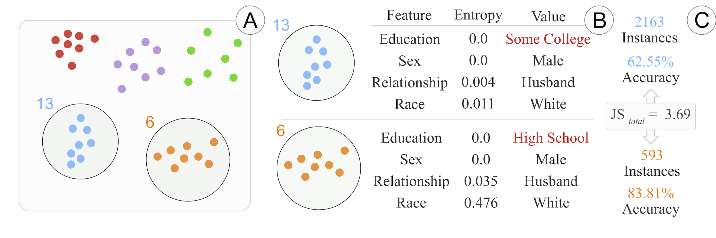 As machine learning is applied to data about people, it is crucial to understand how learned models treat different demographic groups. Many factors, including what training data and class of models are used, can encode biased behavior into learned outcomes. These biases are often small when considering a single feature (e.g., sex or race) in isolation, but appear more blatantly at the intersection of multiple features. We present our ongoing work of designing automatic techniques and interactive tools to help users discover subgroups of data instances on which a model underperforms. Using a bottom-up clustering technique for subgroup generation, users can quickly find areas of a dataset in which their models are encoding bias. Our work presents some of the first user-focused, interactive methods for discovering bias in machine learning models.