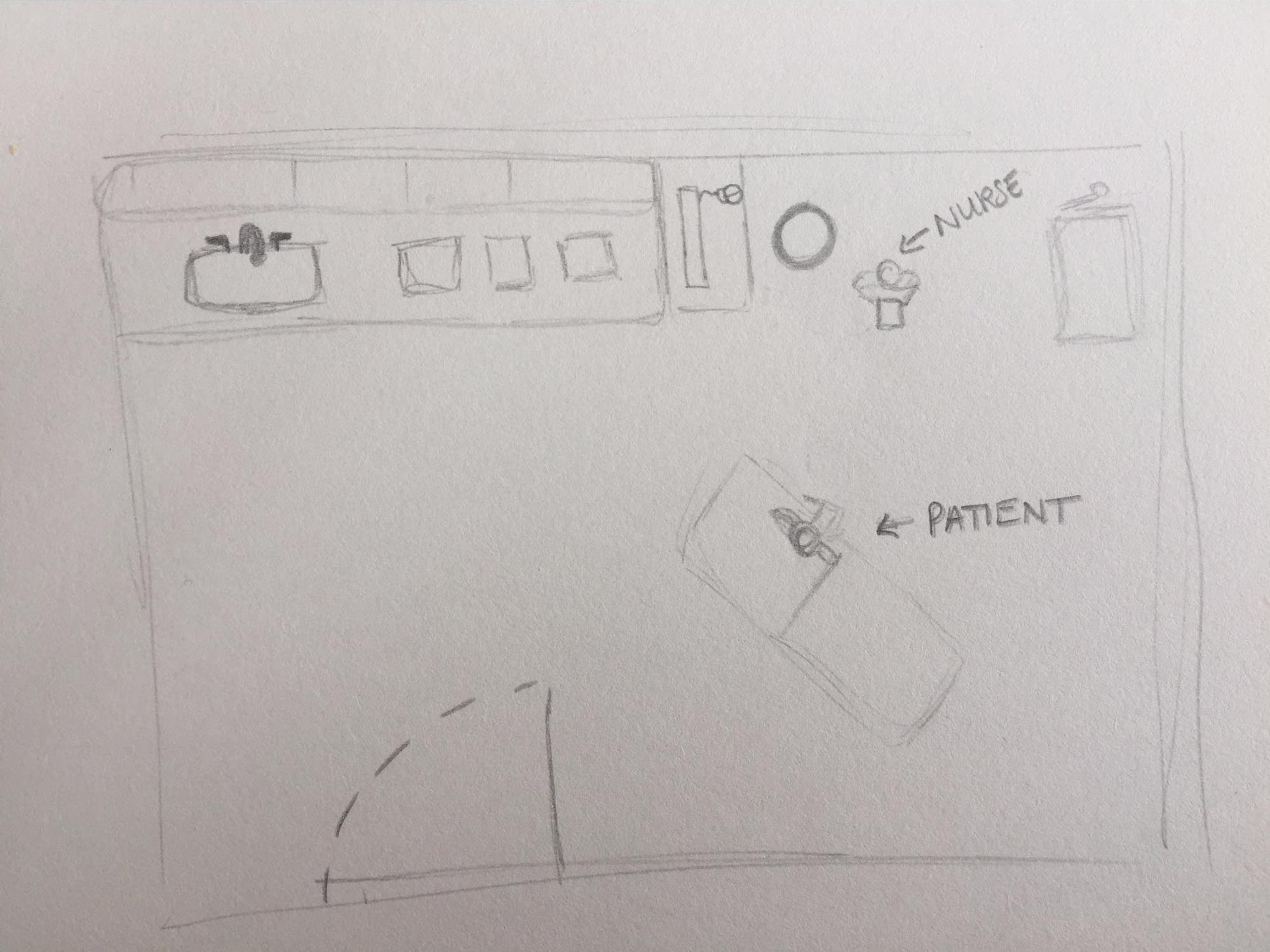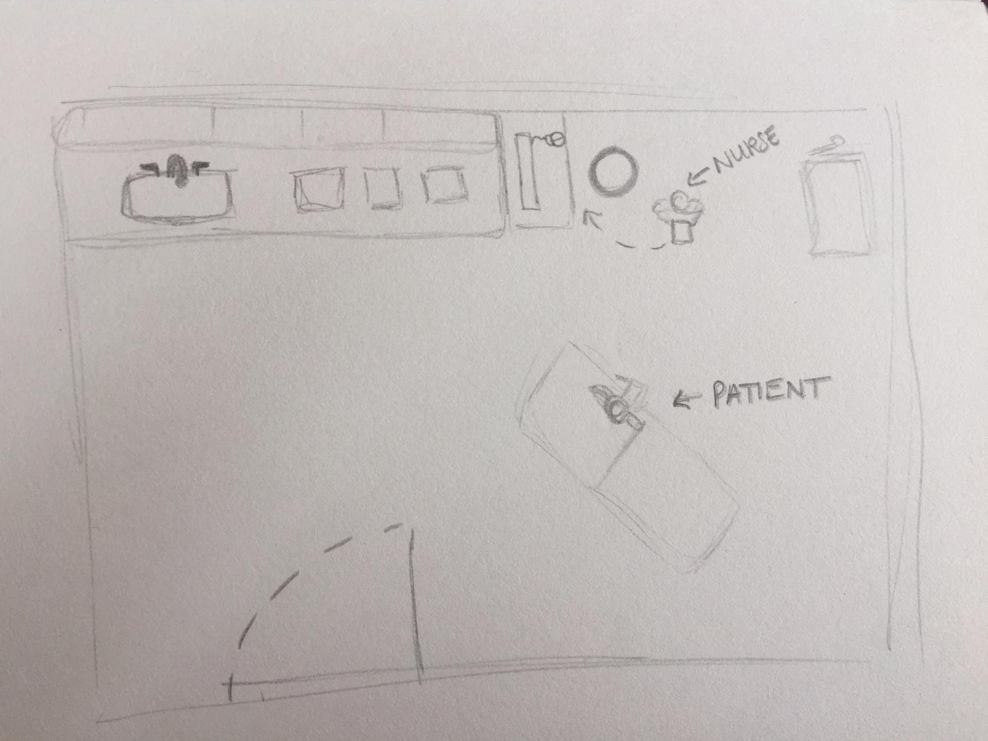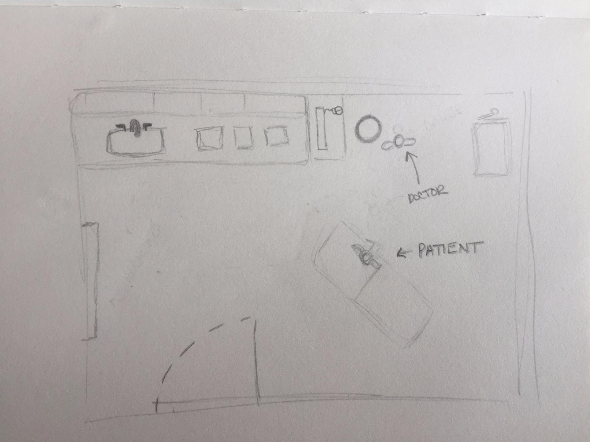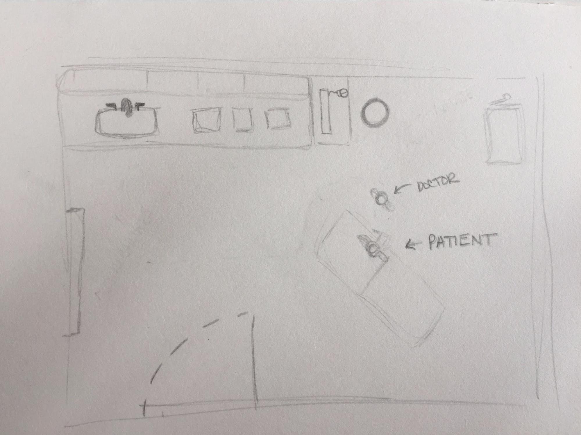 - The current appointment space layout is centered around the patient chair.